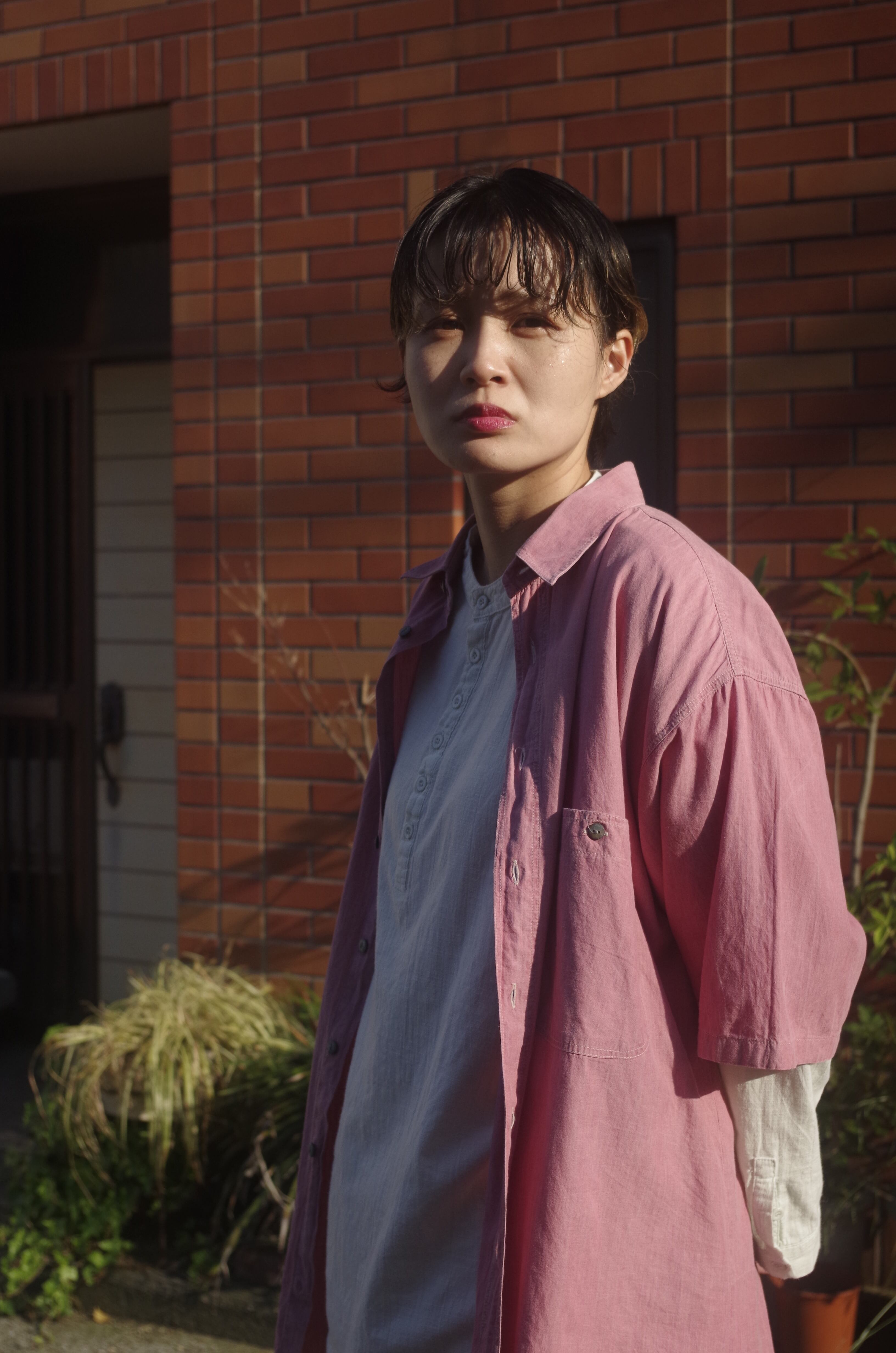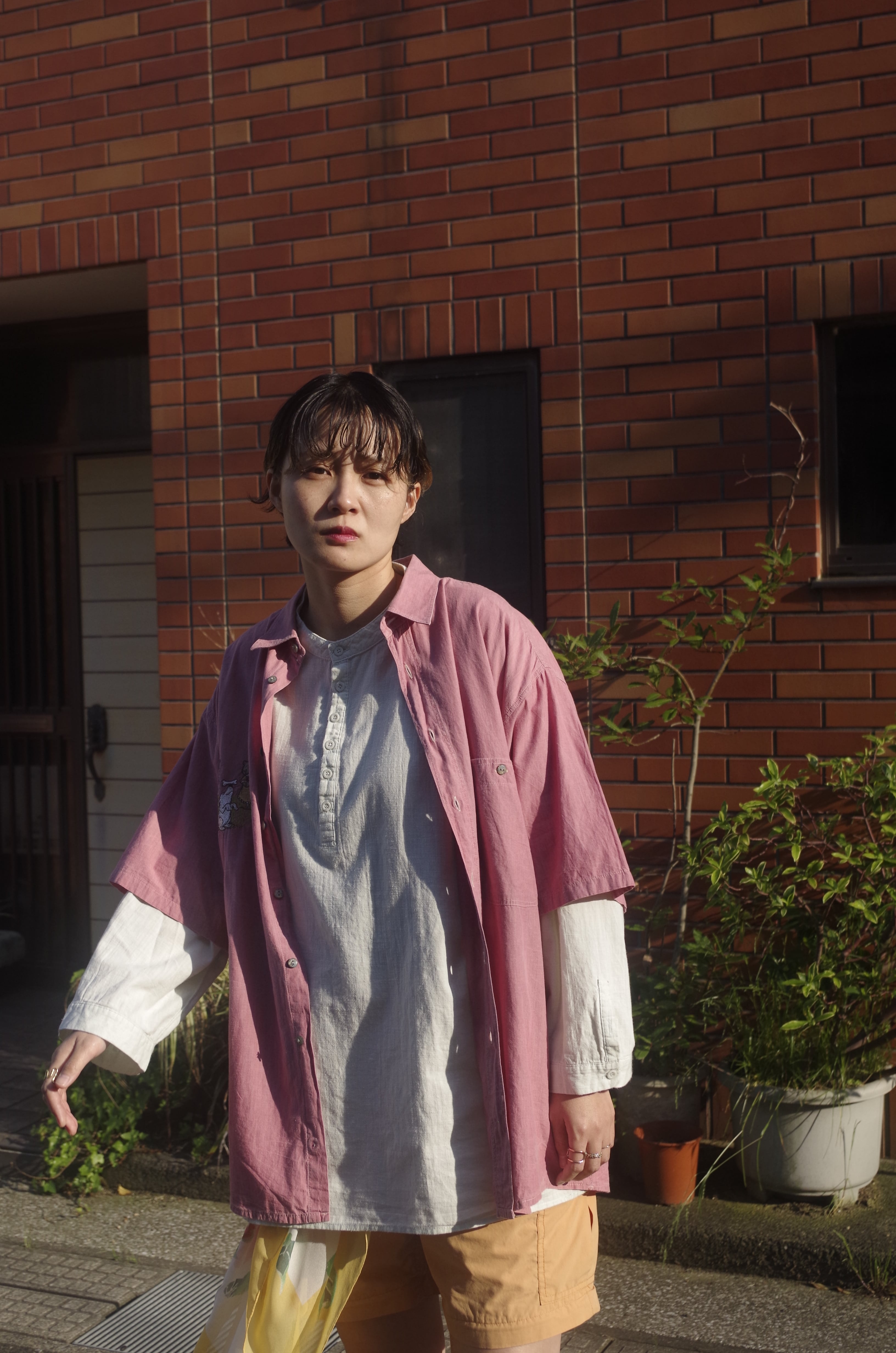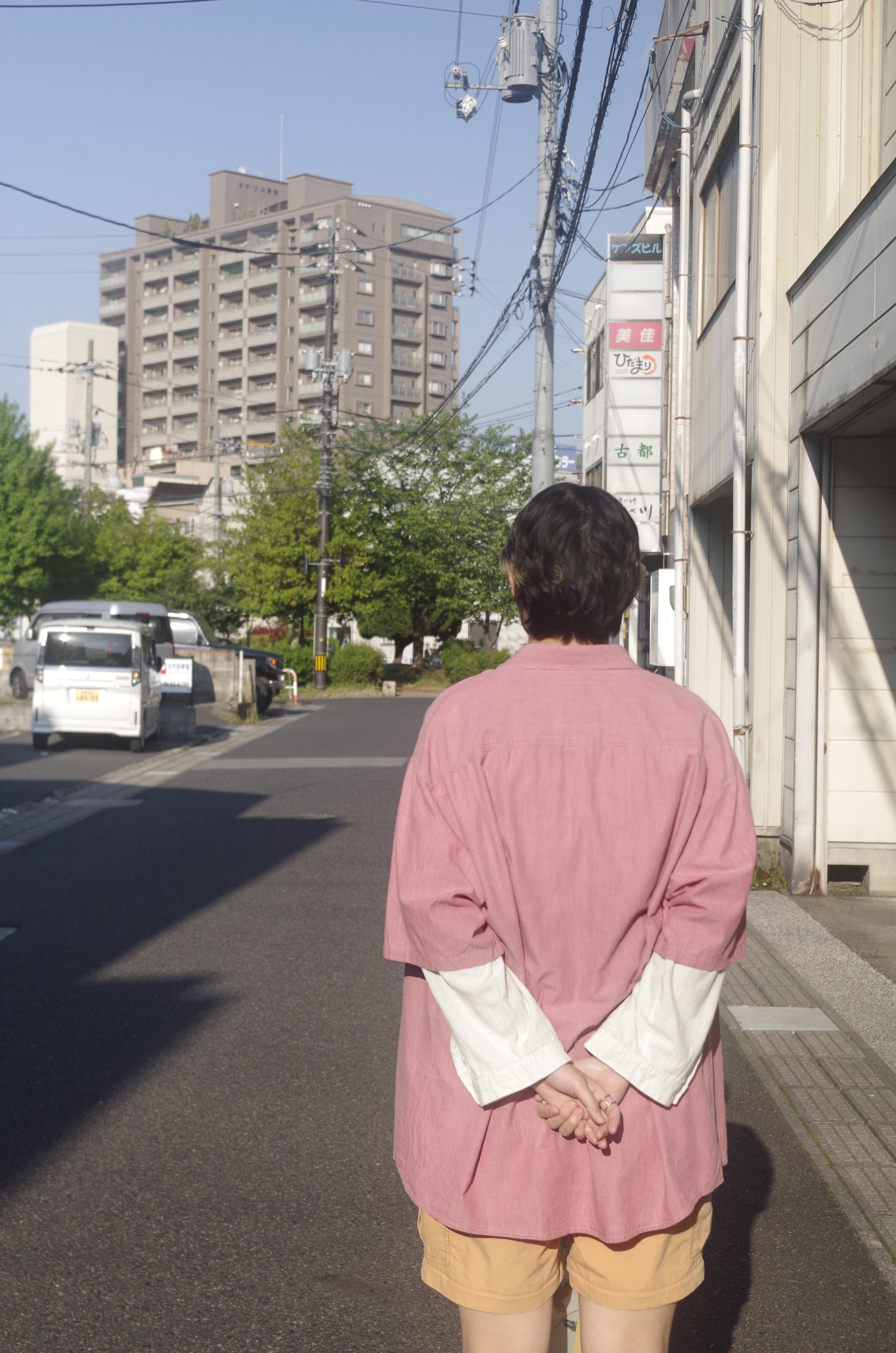 ピンクの半袖シャツ。