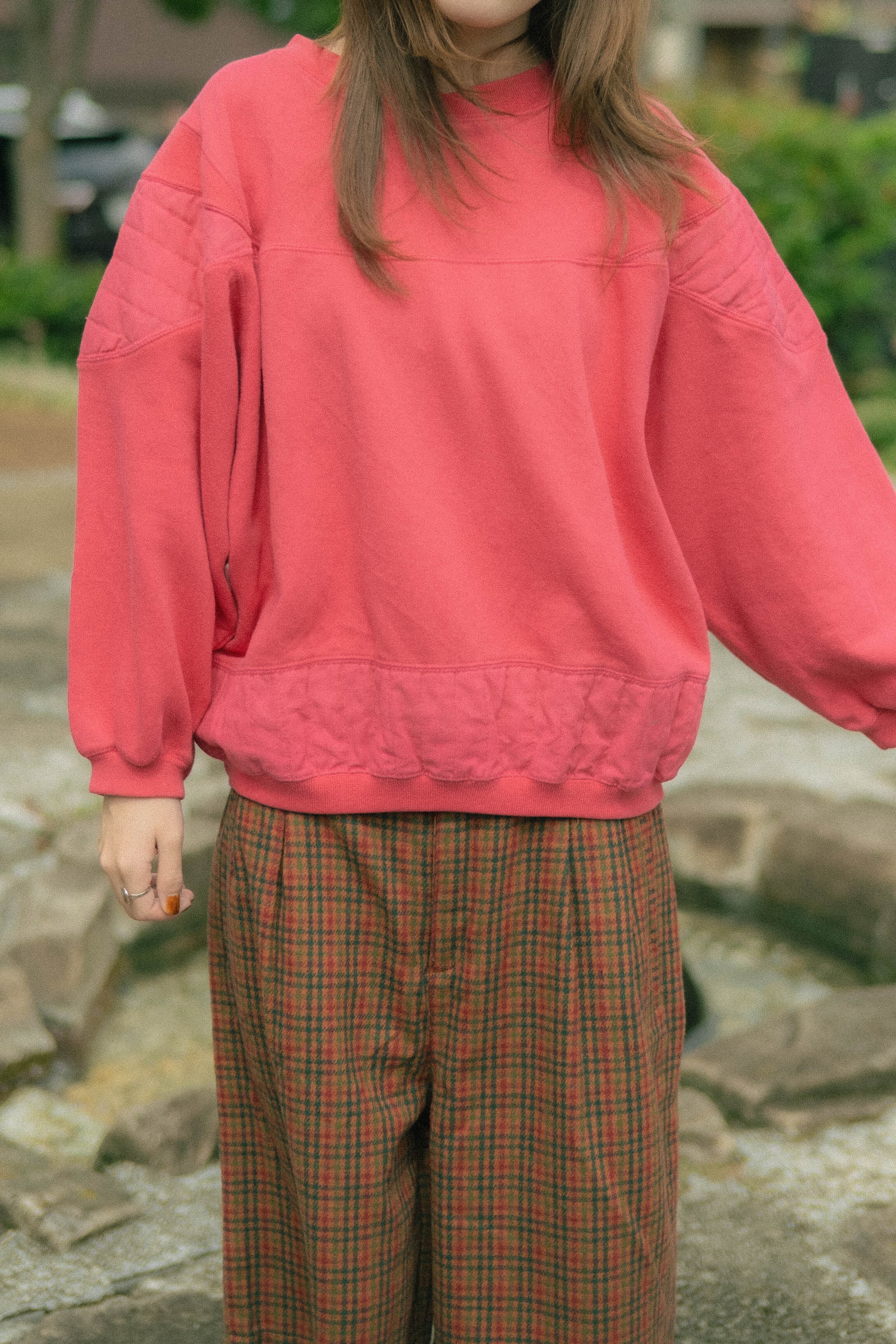 おもしろい切り替えたっぷりなピンクのスウェット。
