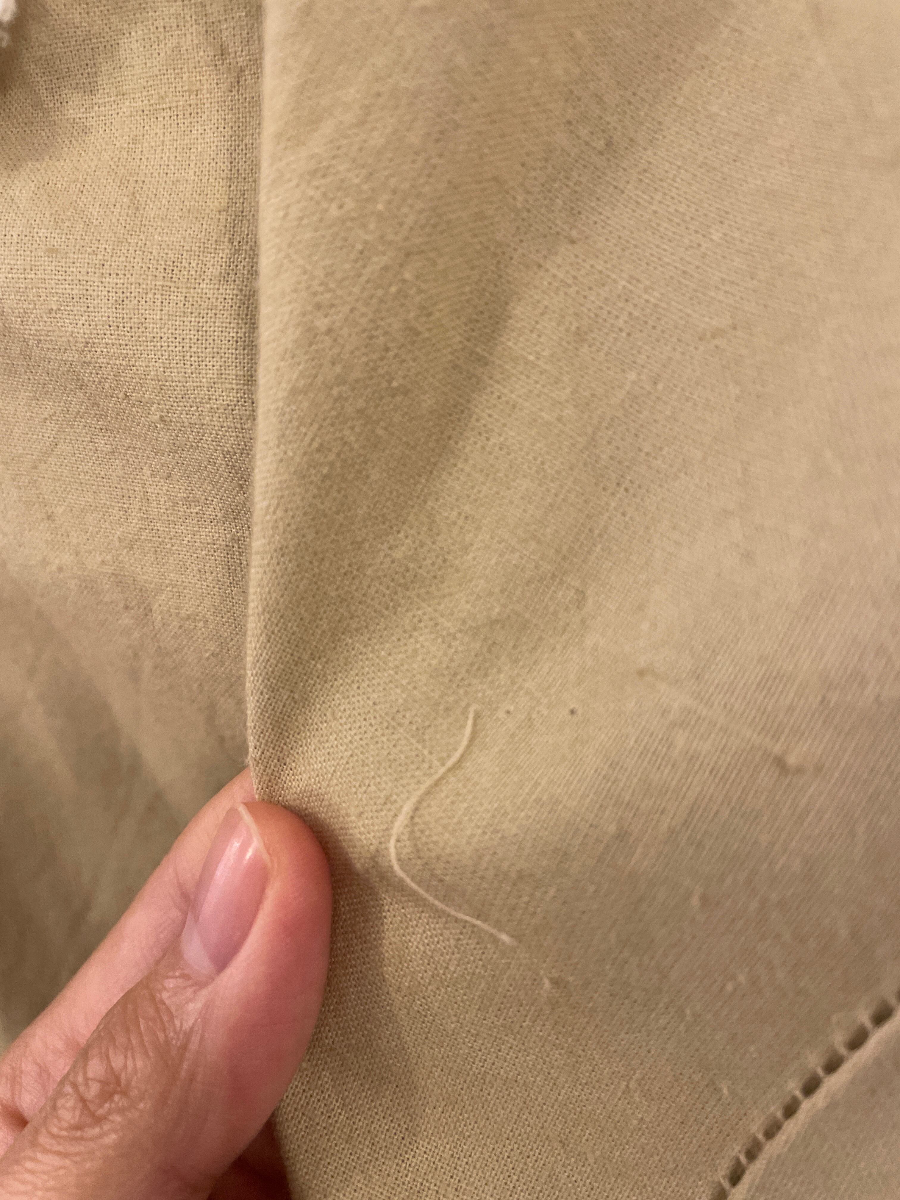 ◯ おそらくカフスを外して縫い直してあり、ゴムを入れて止めてあります。(写真参照)