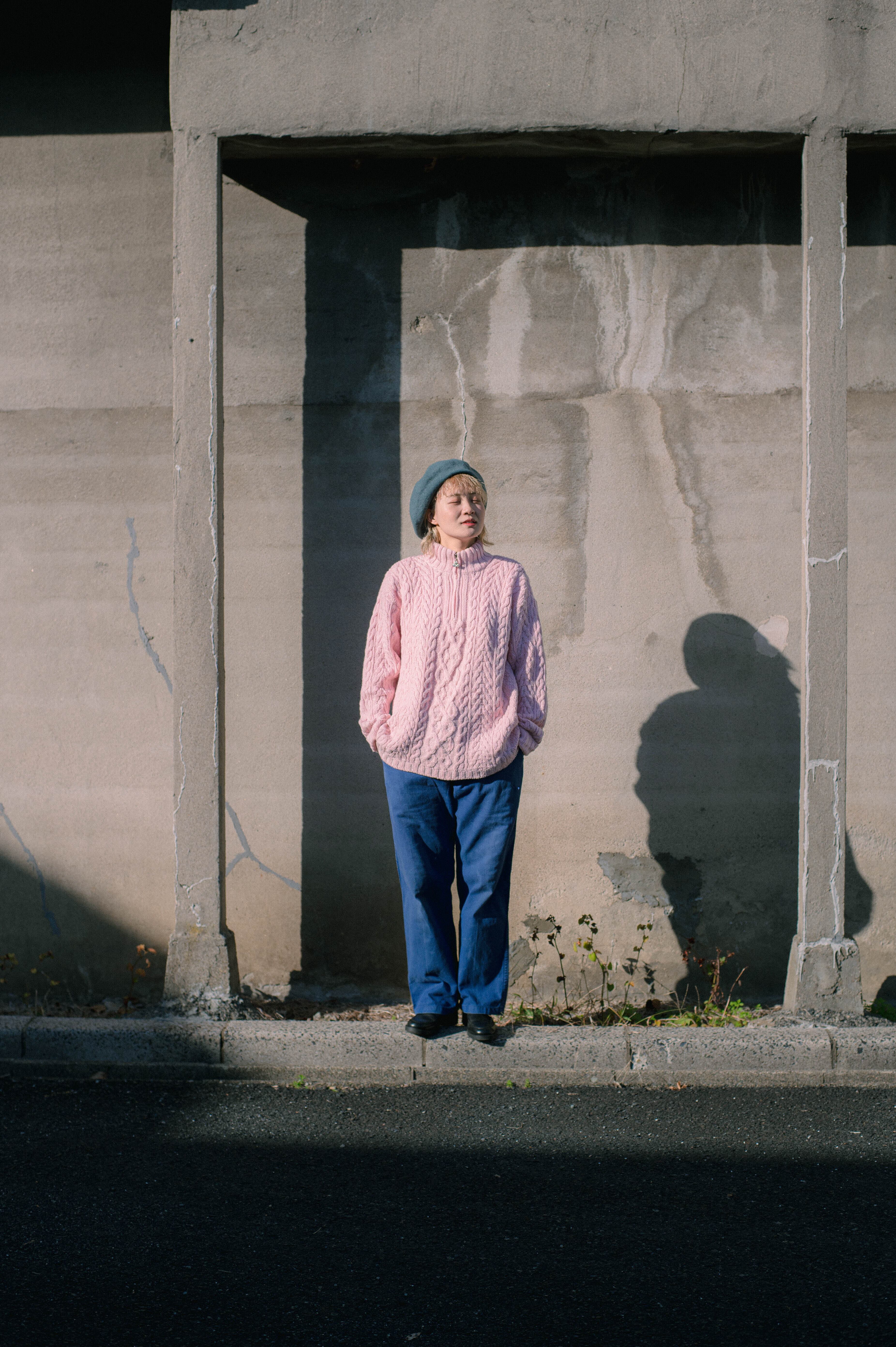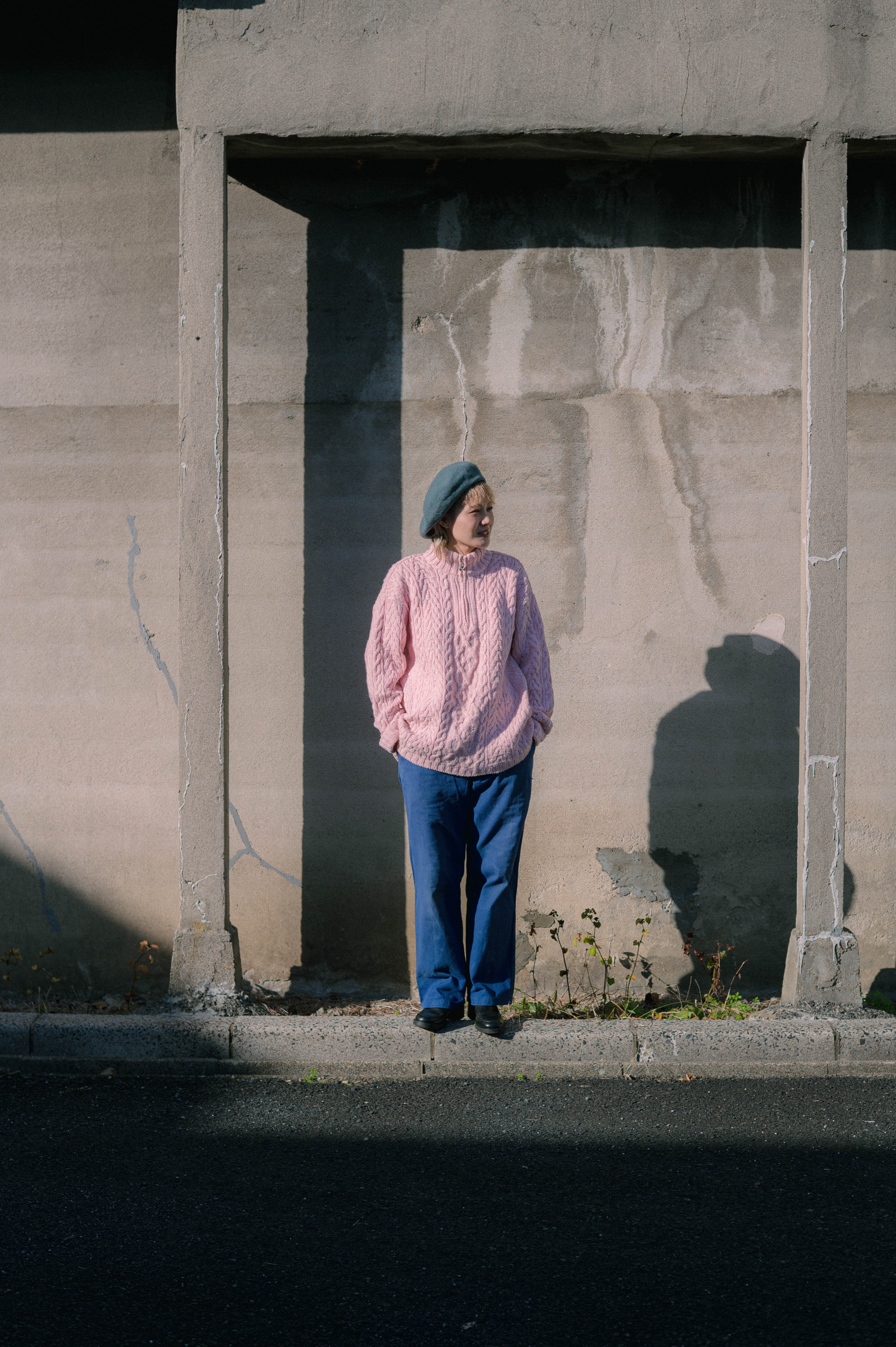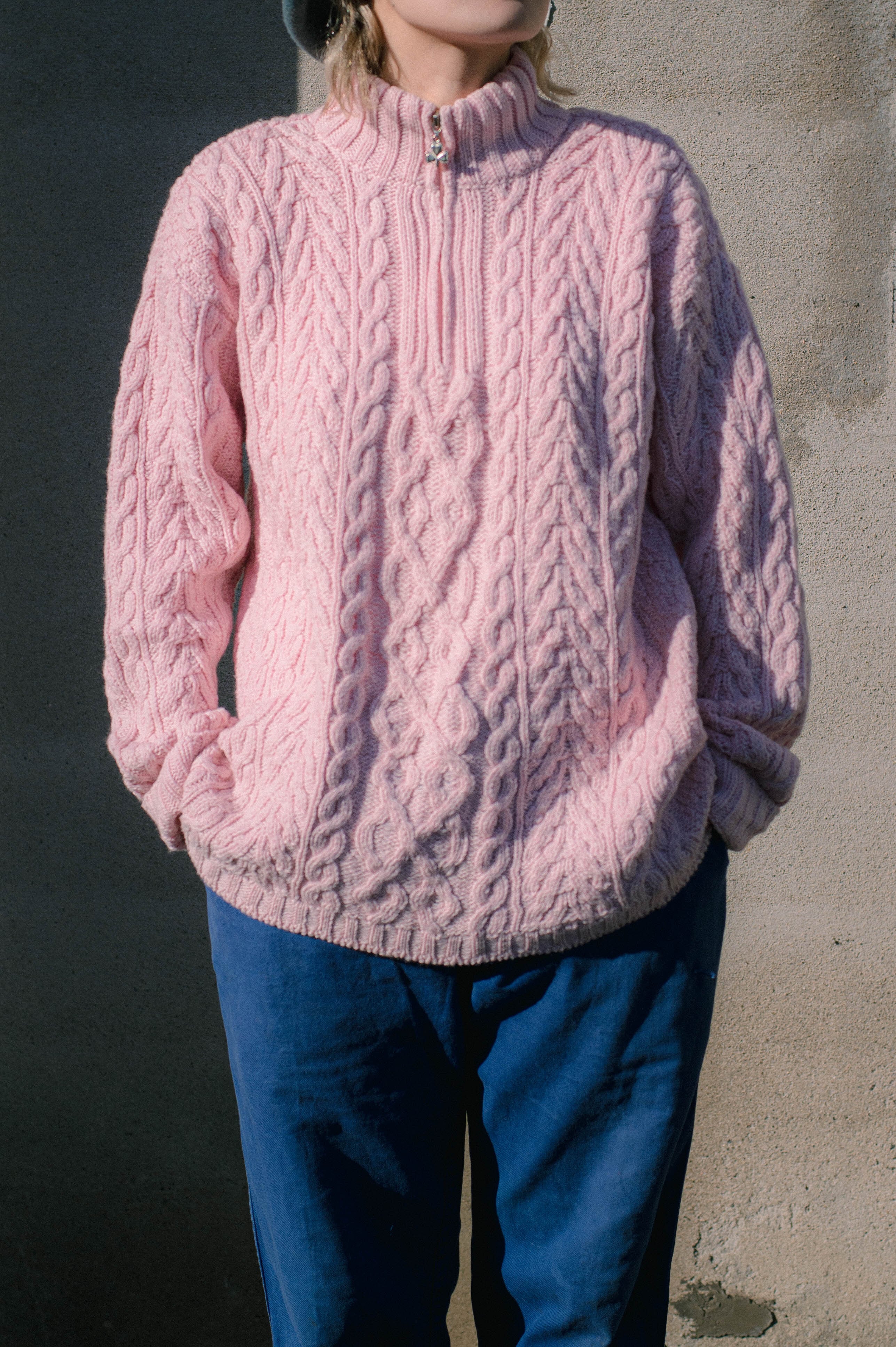 pink half zlp fisherman knit