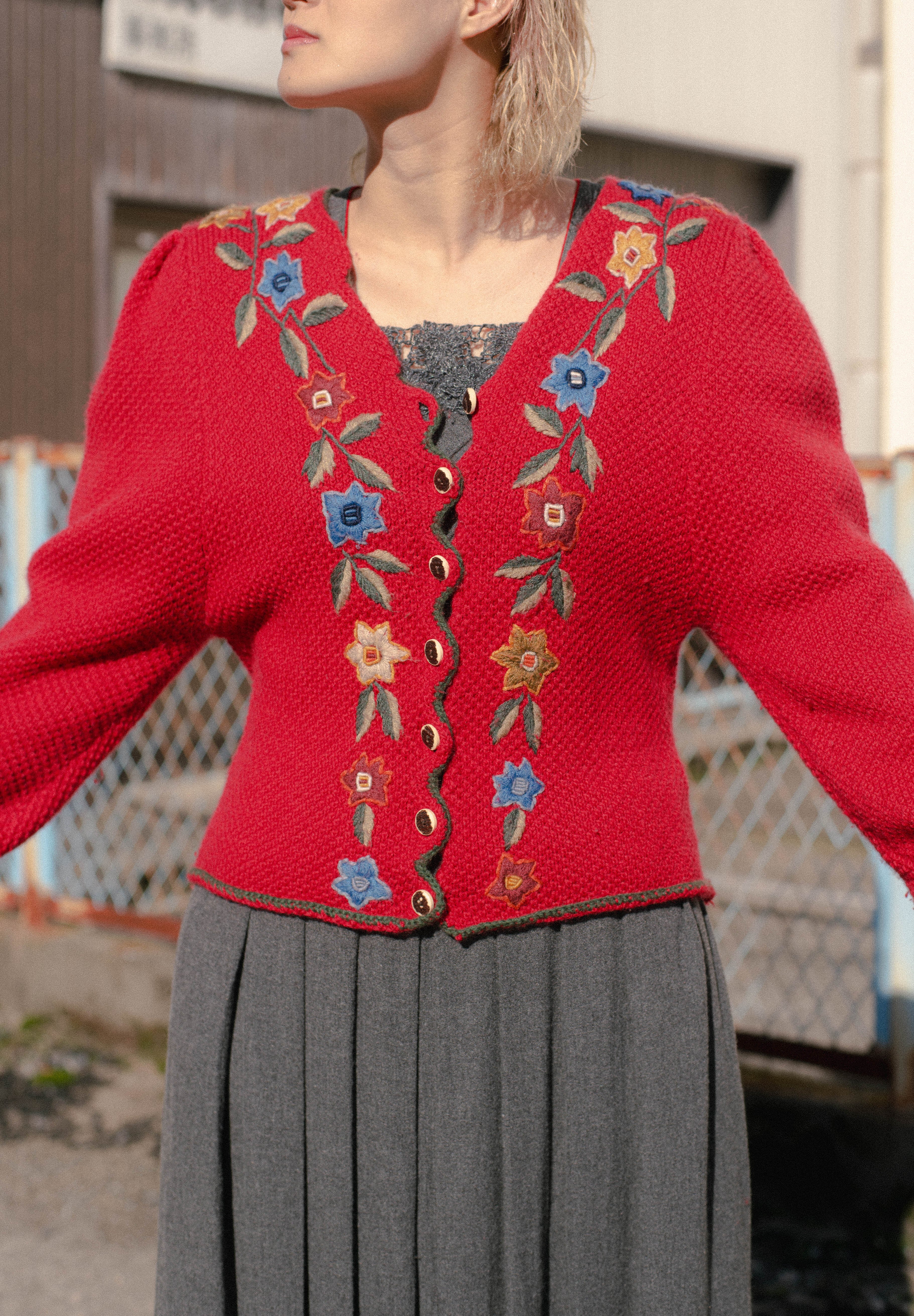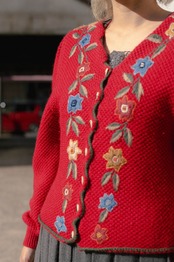 お花の刺繍とたっぷりなお袖がかわいいチロルカーディガン。