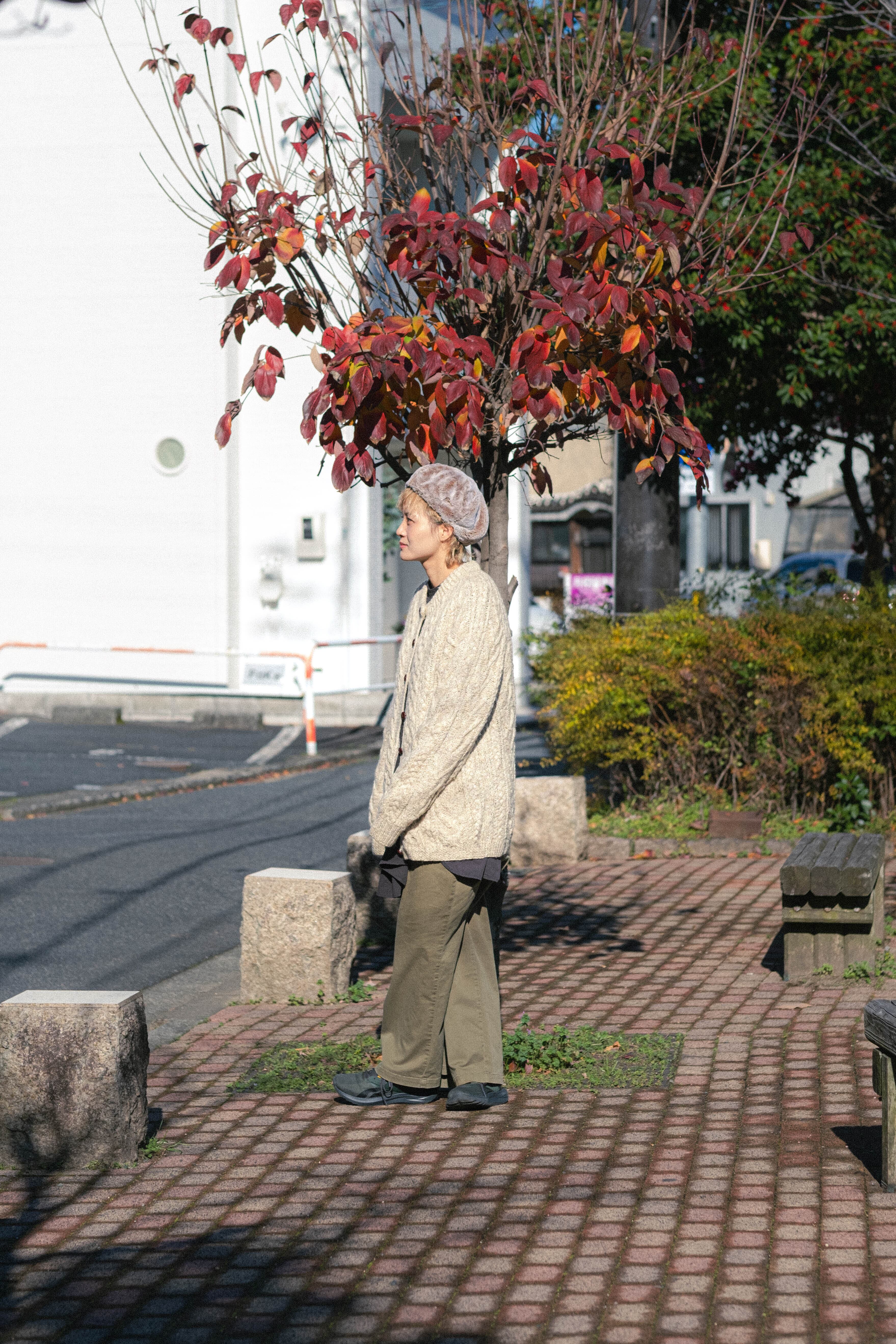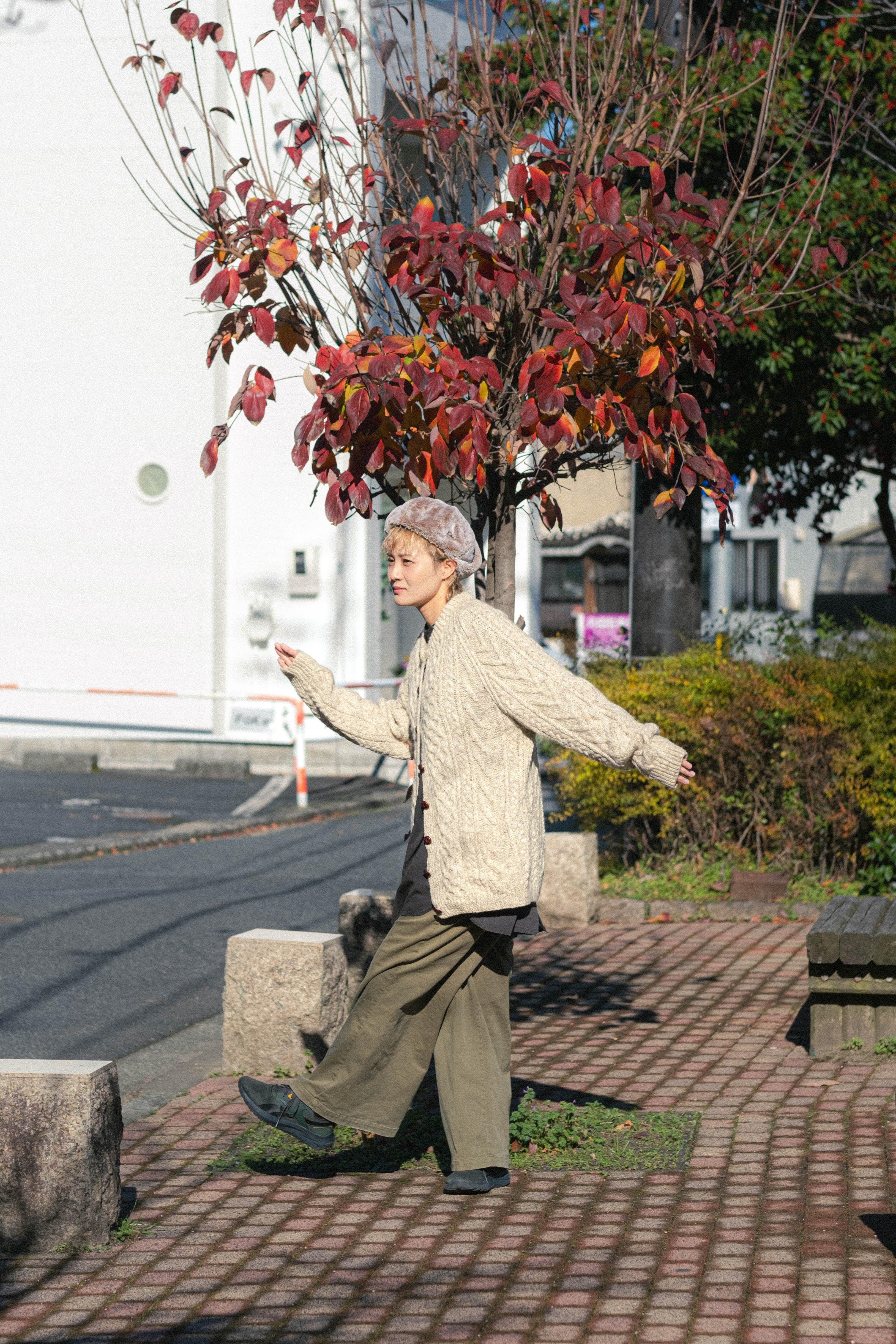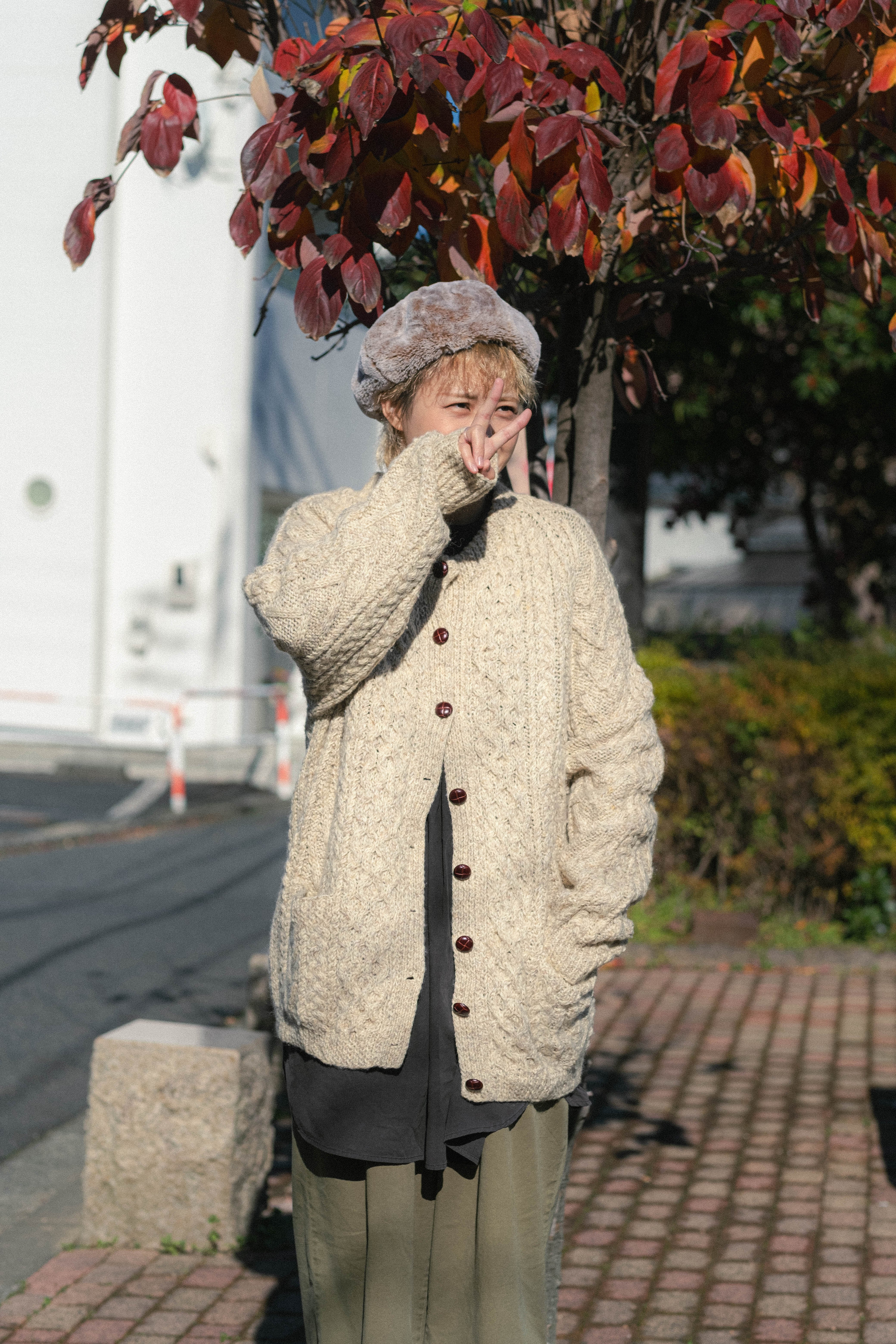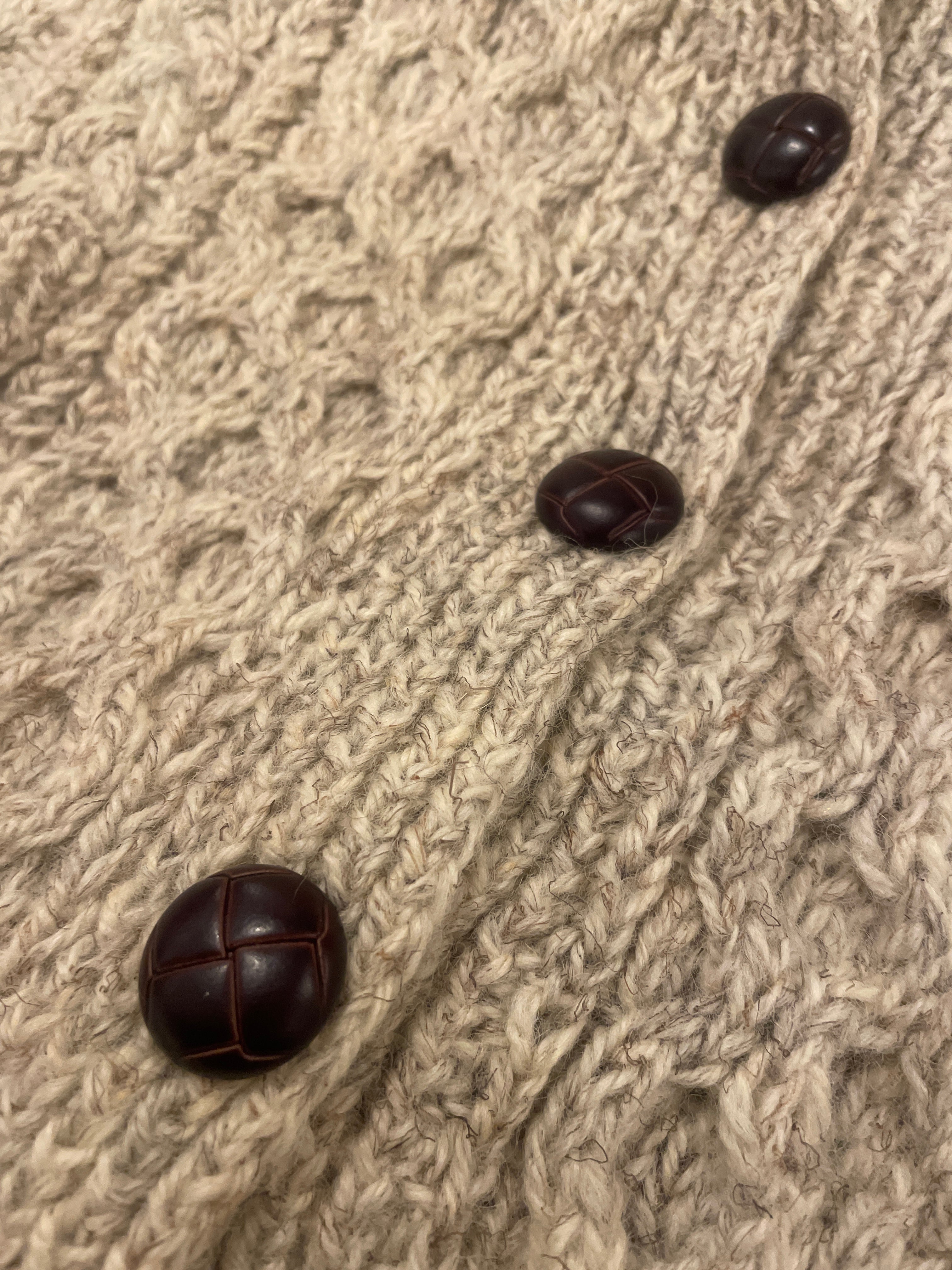 ナチュラルカラーのフィッシャーマンカーディガン。